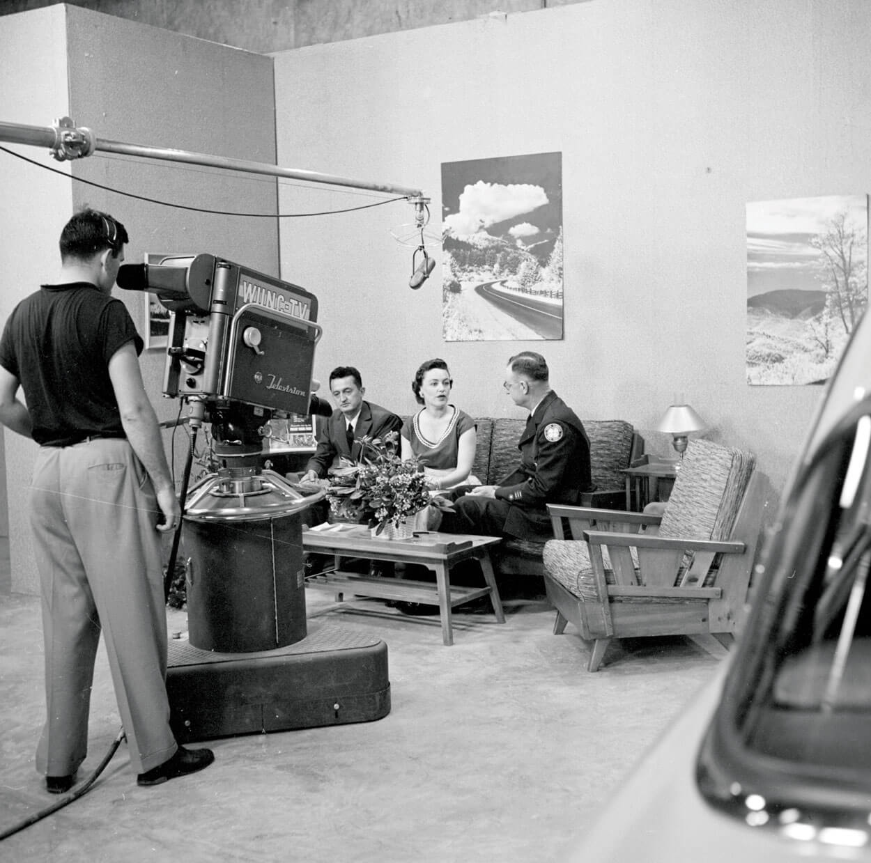 The whole venture is born in 1952, when the Federal Communications Commission (FCC) makes available eight channels in the state for use by noncommercial stations. President Gray calls a meeting of directors and deans from the three campuses — Chapel Hill, Raleigh, and Greensboro — and gets the green light from the Board of Trustees the following year.