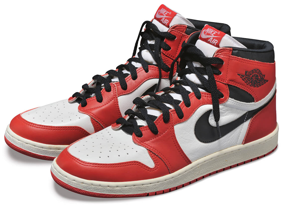 By 1985, fans could be “like Mike” with their own Air Jordans, originally created just for MJ. This early pair resides at the North Carolina Museum of History in Raleigh. Photography courtesy of North Carolina Museum of History