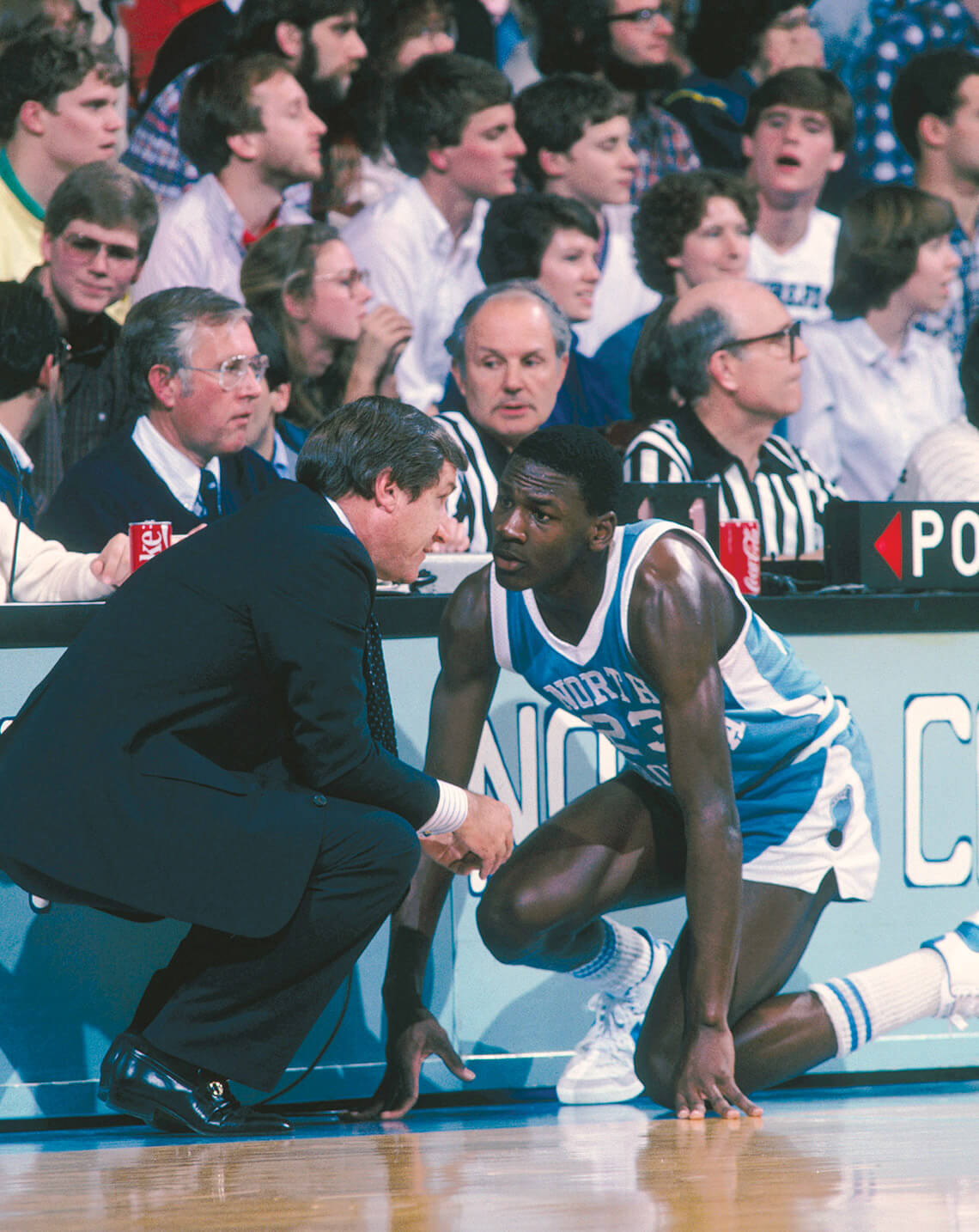 During three seasons at UNC, Jordan grew close to Coach Dean Smith (left), later recalling, “He was more than a coach — he was my mentor, my teacher, my second father.” photograph by FOCUS ON SPORT/CONTRIBUTOR/GETTY IMAGES