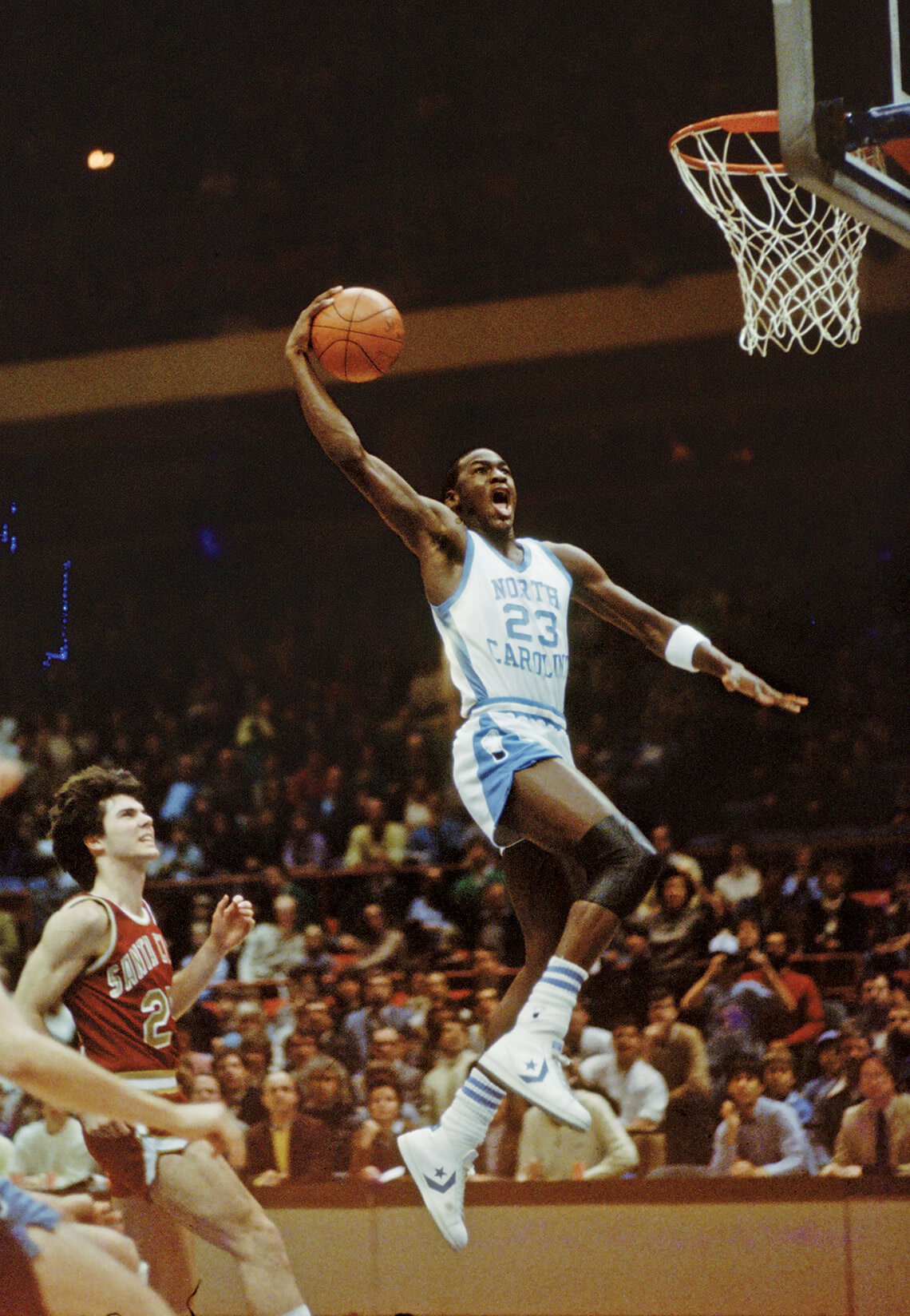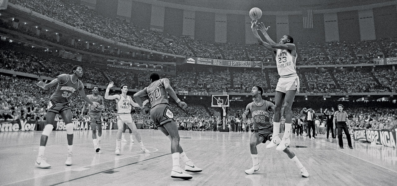 Even as a freshman at UNC Chapel Hill, Michael Jordan was clearly destined for greatness. During the 1981 Cable Car Classic, he helped the Tar Heels defeat Santa Clara University, 76-57. Photography courtesy of THE HUGH MORTON PHOTOGRAPHS AND FILMS #P0081, NORTH CAROLINA COLLECTION, UNC-CHAPEL HILL LIBRARY