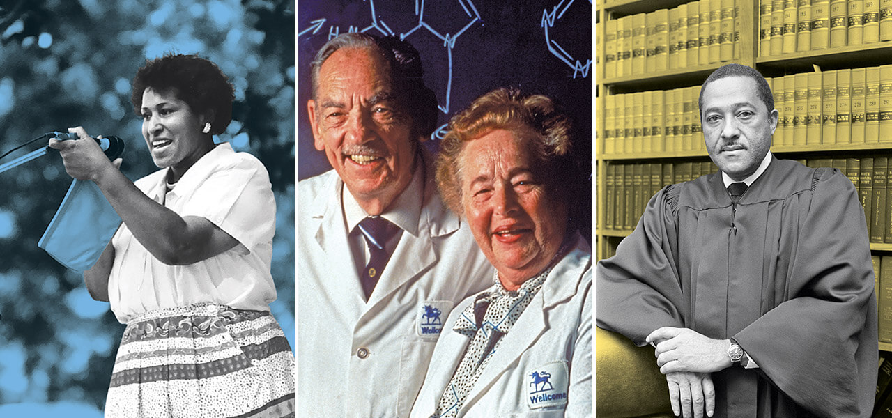 Their collaborative effort leads to treatments for leukemia, malaria, and meningitis, among other maladies. In 1988, they, along with Sir James W. Black of the United Kingdom, are awarded the Nobel Prize in Physiology or Medicine. In his acceptance speech, Hitchings cites William Faulkner’s “verities of the human heart.” He declares, “As a scientist, I should like to suggest three verities of the human mind — curiosity, creativity, and the love of knowledge.”