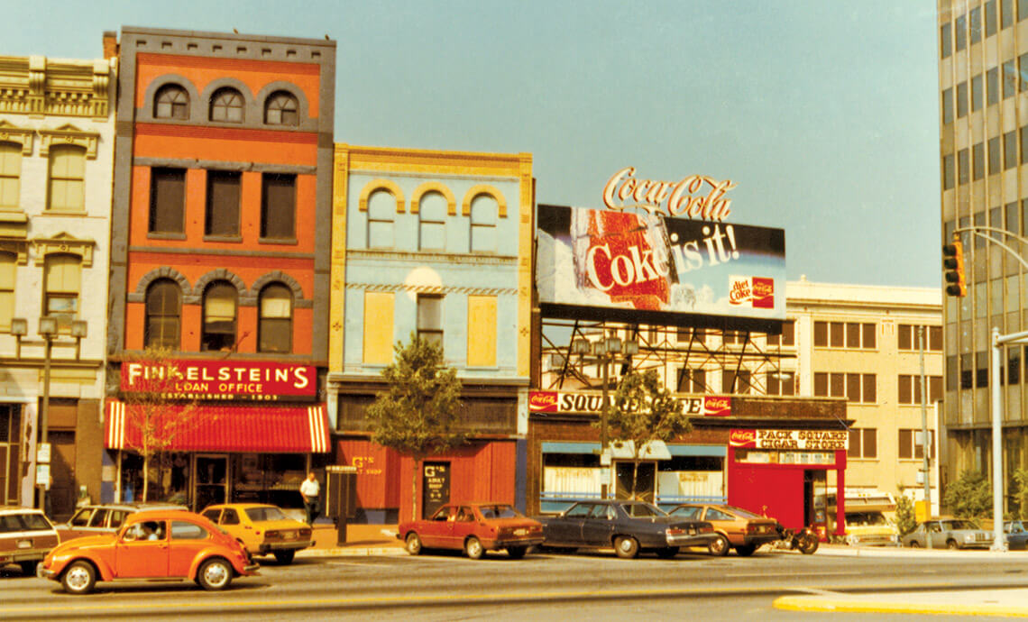 Philanthropist Julian Price returned to his native North Carolina in 1989 and quickly joined ongoing efforts to preserve the beauty, history, and livability of downtown Asheville, including the storefronts on Pack Square. Photography courtesy of BUNCOMBE COUNTY SPECIAL COLLECTIONS, PACK MEMORIAL LIBRARY, ASHEVILLE, NC