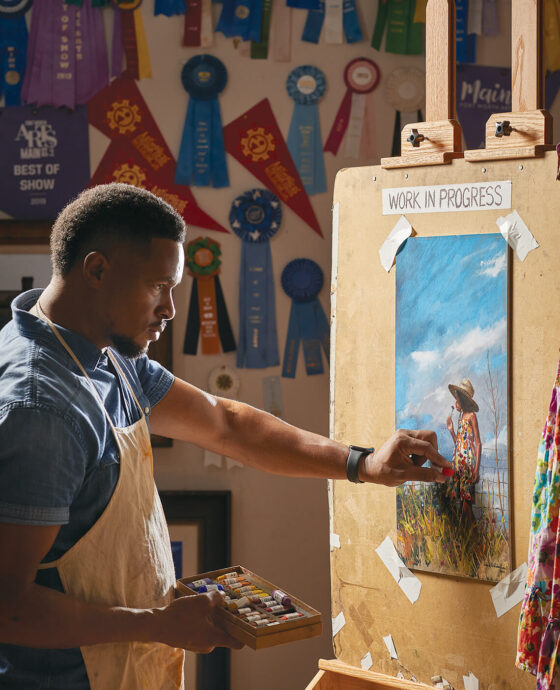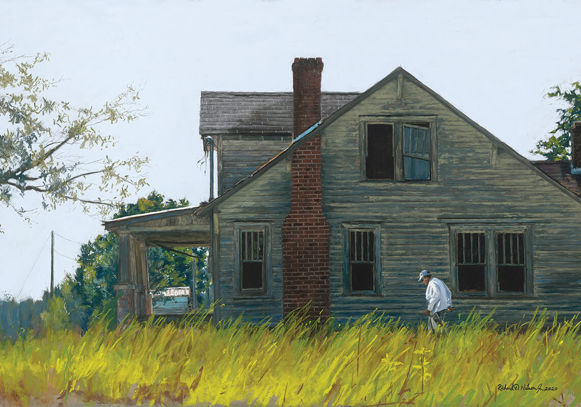 As Wilson opens up about his life and his work, a recent landscape titled A Window Into the Past — reminiscent of his grandmother’s home in the Martin County community of Robersonville — peers out from behind his shoulders. Almost as numerous as the paintings that surround him — Southern scenes, historical figures, ballerinas fashioned after his three daughters — is the collection of ribbons tacked to the wall. A former National Arts Club Award winner and recipient of the Pastel Journal Founder’s Award in memory of Maggie Price, Wilson took top prize last year at more than a dozen juried exhibitions across the country.