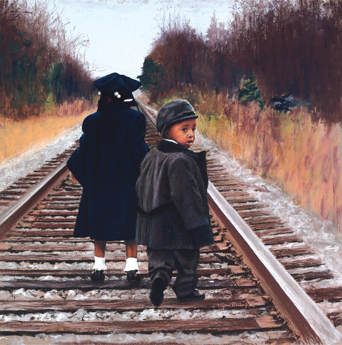The journey that Wilson chose to take in rural eastern North Carolina has depended on faith — in himself and in the art-loving world. In Faithful Journey, he depicts a child not so sure of his future destination. painting by Richard Wilson