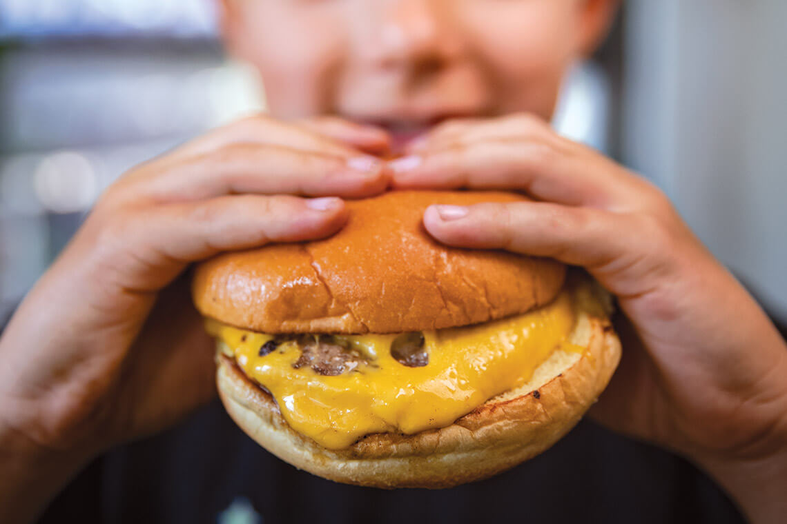 The double cheeseburger at Baby Bull — one of several restaurants opened by people who’ve worked at The Admiral — is made with two Angus beef patties, caramelized onions, American cheese, homemade bread-and-butter pickles, Duke’s mayonnaise, and a potato bun.<br><span class="photographer">photograph by Charles Harris</span>