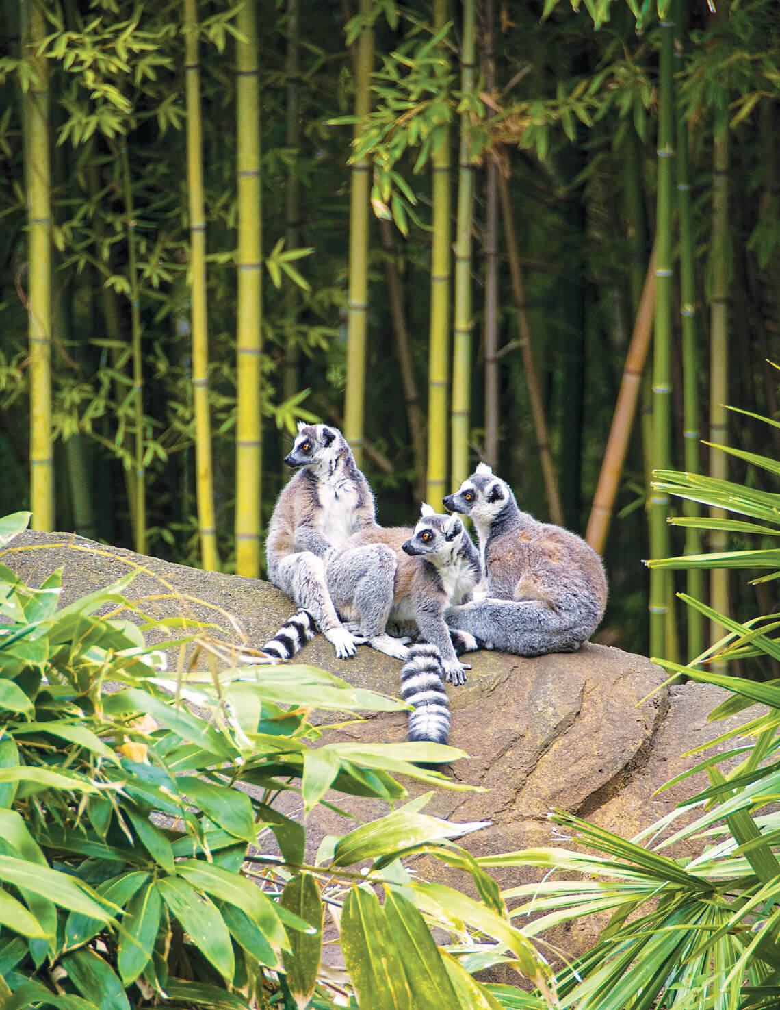 At the NC Zoo, ring-tailed lemurs enjoy bamboo as much as Oona does. Unlike Oona, though, they prefer to eat it. photograph by North Carolina Zoo