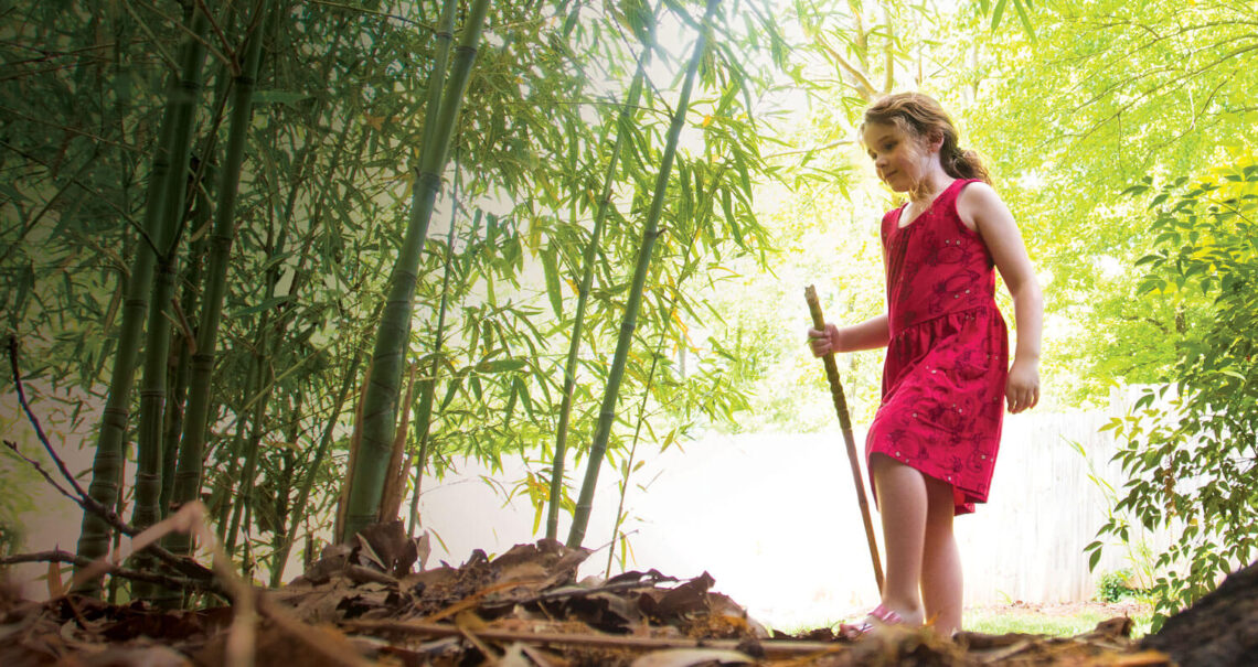 A mysterious world grows in our backyard. Dark and seemingly impenetrable, with a jagged green canopy that shakes forebodingly when the wind blows. In the slightest breeze, it whispers, Shhhh. But from within, there’s a louder voice: “Come on, Dad! Come see Bamboo Rock!”