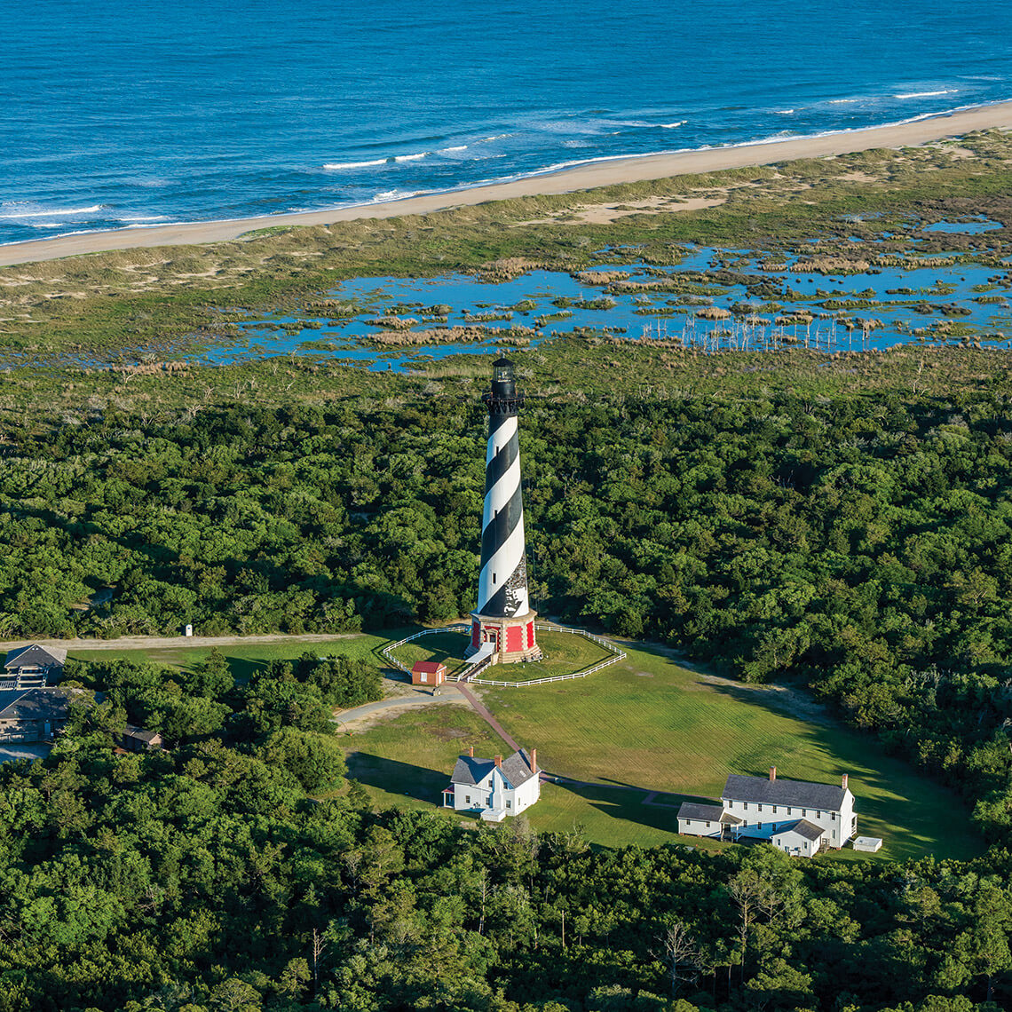 Nearly two decades after it experienced a change of scenery, the Cape Hatteras Lighthouse remains a Hatteras Island marvel. photograph by Emily Chaplin and Chris Council