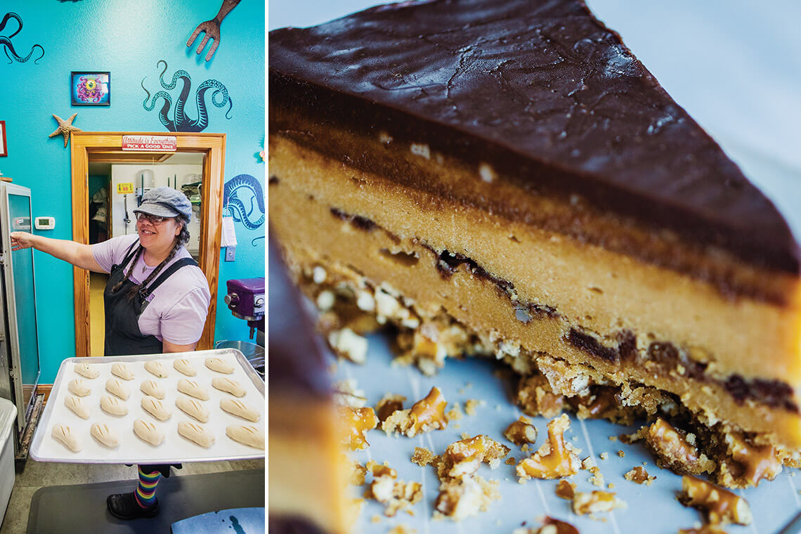 At Scratchmade Snackery, Kitty Oden makes mini sourdough loaves, cheesecake bars, and other baked goods. photograph by Chris Hannant