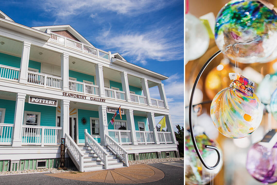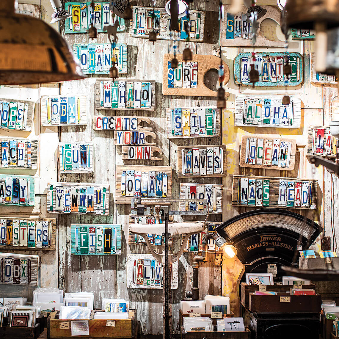 This upscale gallery features works by regional artists, including paintings by owner Carole Nunnally and the island’s largest collection of North Carolina-made pottery. The gallery is divided into themes: shorebirds; marine life; boats and lighthouses; “whimsical”; jewelry and pottery; and people, places, and things.