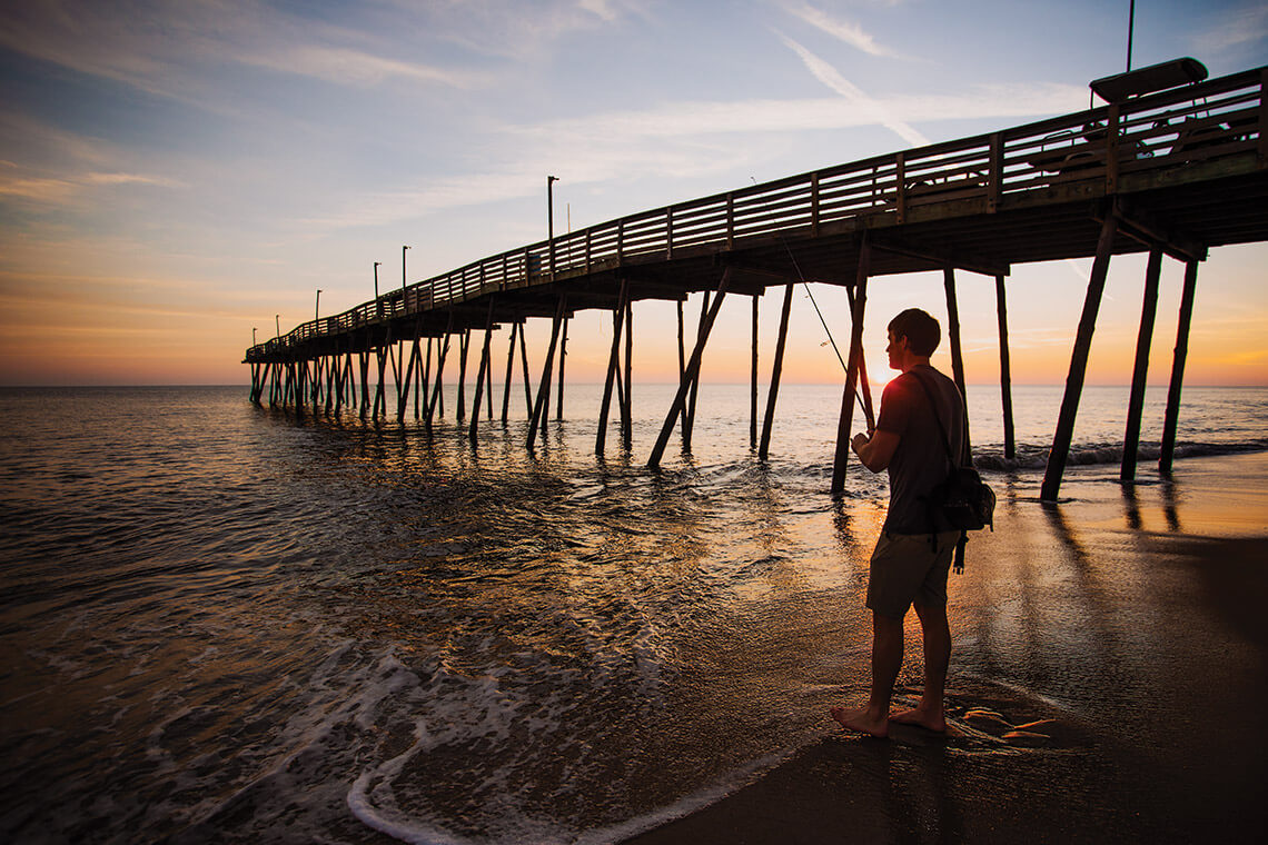 Having withstood time, tides, and tempests, Nags Head Fishing Pier, Jennette’s Pier, and the Outer Banks Fishing Pier offer family fun and endless views of the ocean, just as they have for decades.