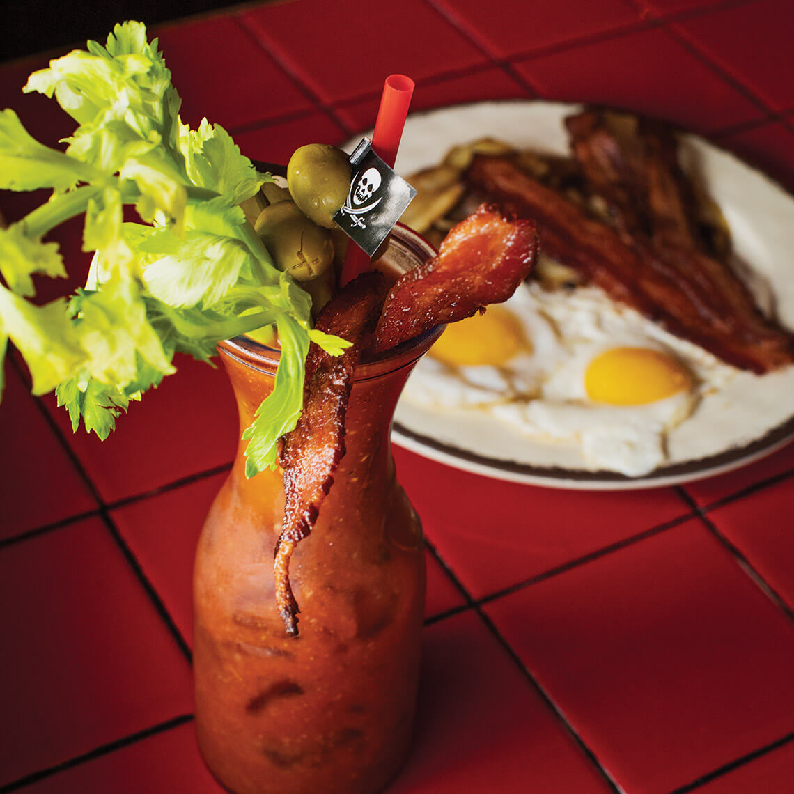 Start the day with breakfast and a Bakon Mary from The Jolly Roger Restaurant. photograph by Chris Hannant
