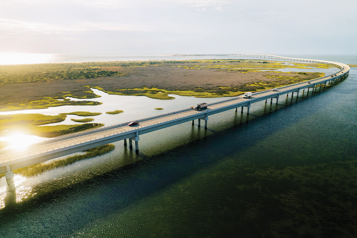 Heralded as a marvel of engineering, the new bridge connecting Bodie and Hatteras islands, completed in 2019, was designed to withstand the turbulent waters of Oregon Inlet. Stretching for 2.8 miles, the bridge replaced the iconic 1963 Bonner Bridge, which has found new life — literally — as an artificial reef.