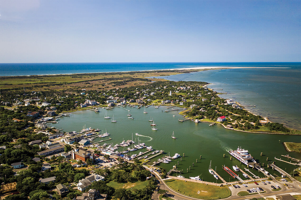 Ocracoke Village surrounds its harbor, Silver Lake. photograph by Chris Hannant