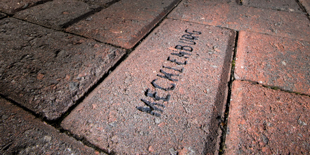 The state line running through the park is clearly marked, and every county in each state is represented on bricks. photograph by Jerry Wolford & Scott Muthersbaugh