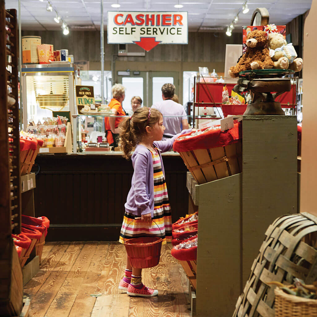 Bins brim with sweets that adults will remember from childhood — and candy that 5-year-old Hannah Motsinger will never forget. photograph by Joey Seawell