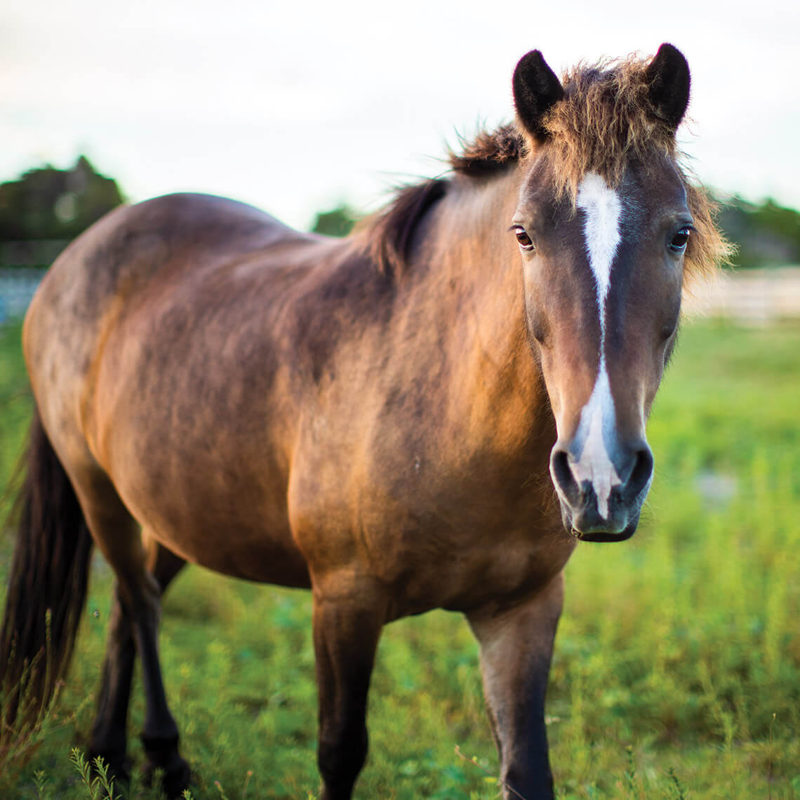 The 9-year-old chestnut loves to eat pennywort, which grows wild on the island. His mother was Jitterbug, who was adopted from Cape Lookout National Seashore because the herd needed new breeding mares. When Captain was a baby, he wasted no time discovering his new legs. “He was tearing around at 2 days old!” Michaels says. When a rooster got loose in the pony pen, hanging around for a few days and scaring many of the ponies, fearless Captain chased it away.