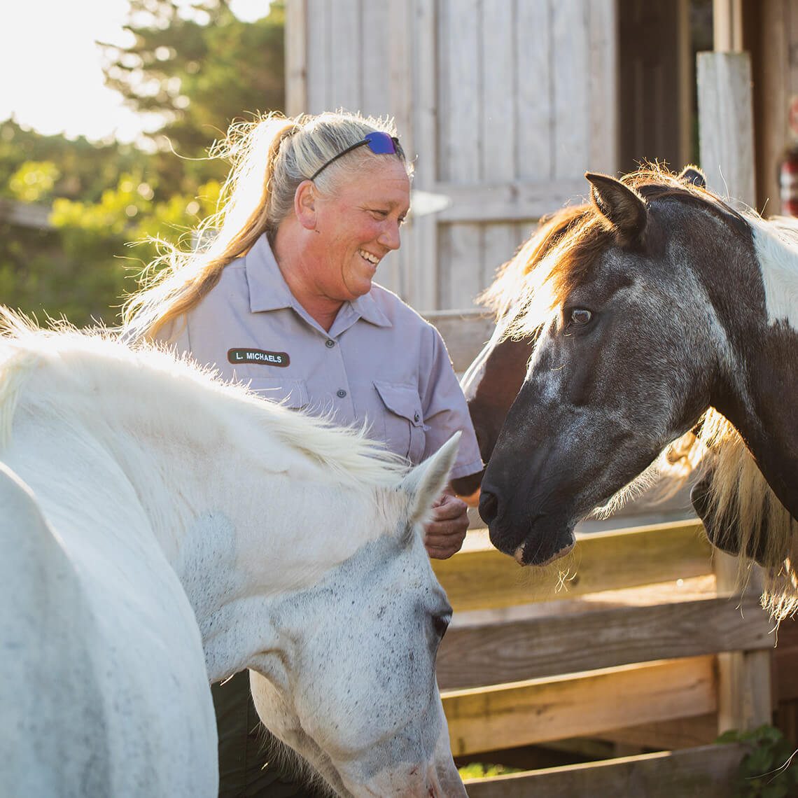 Lindessa, a black-and-white paint mare with one blue eye and one brown eye, liked to take her time with her morning breakfast. She would chew slowly while Laura Michaels, an animal caretaker for Cape Hatteras National Seashore, hand-fed her grain pellets, one partial scoop at a time. While Lindessa ate, Michaels would sing or talk to her and contemplate the life that the old mare had lived.