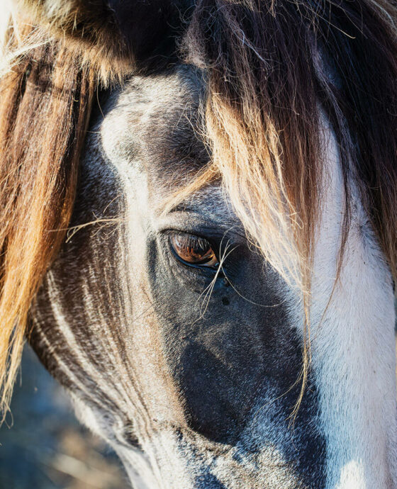 Our State Animals: Check out the full series. Lindessa, a black-and-white paint mare with one blue eye and one brown eye, liked to take her time with her morning breakfast.