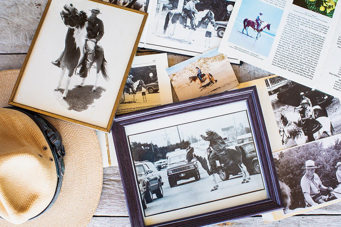 Bennink never had one of his own, but he had grown up around horses, so he was comfortable around them. In 1980, he started teaching at Ocracoke School and working fall weekends at Cape Hatteras National Seashore. That winter, he went to ranger school. He’d heard that the Park Service was considering starting a mounted patrol, and he was interested. He wrote the district ranger and asked to be considered, and in 1981, he transferred to a seasonal mounted ranger position on Ocracoke.