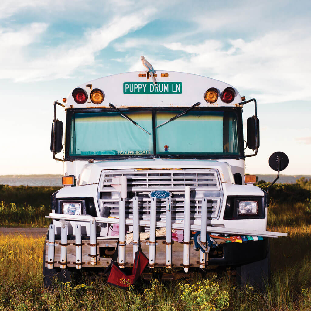 Some fishermen park their vehicles for months at a time, like the bus near the campground. Empty rod holsters mean the owner’s gone fishing. photograph by Baxter Miller