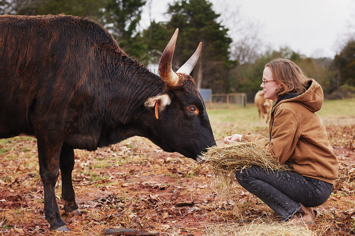 In late 2019, the McCombies decamped from Bynum for an 11-acre farm not far away. There, they continued writing and performing their music and swelled the ranks of their growing family of critters: an imperious turkey called Cornbread; Sercy and Nugget, the aforementioned mama cow and calf; and their horses, Waylon, Wilder, and Wojo. All of whom became reality TV stars in 2022, when PBS North Carolina produced On the Road with the Chatham Rabbits, a five-part series on the duo and their bouncing bucolic exploits.