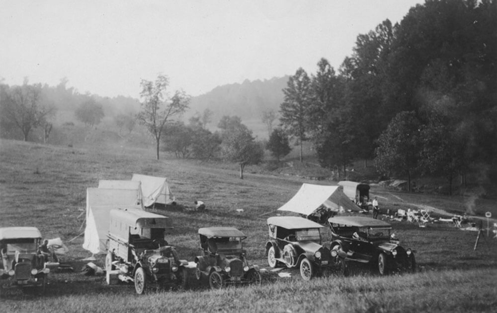 “It often seemed to me,” Burroughs later wrote, “that we were a luxuriously equipped expedition going forth seeking discomfort.” If they found any in 1918, on their Appalachian jaunt from Pennsylvania to North Carolina, they didn’t let on. A film crew, brought along to document the journey for newsreels, captured them living it up. Which was, in part, the point. This was the dawn of a new form of recreation: car camping. The industrialists, whose inventions made the trend possible, believed that modern conveniences could actually bring folks back to nature, at a time when so many were trading in rural life for cities. And if Burroughs, who once called the car a “demon on wheels,” could embrace the idea, the possibilities were endless.