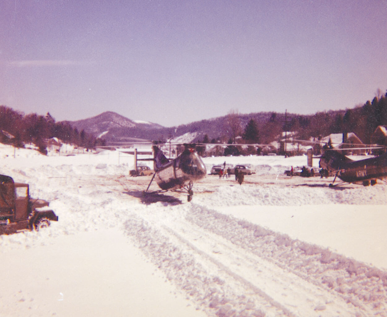Army Helicopters in Snowy Field, Watauga County, NC, 1960, courtesy of the Constance Stallings Collection, Digital Watauga Project