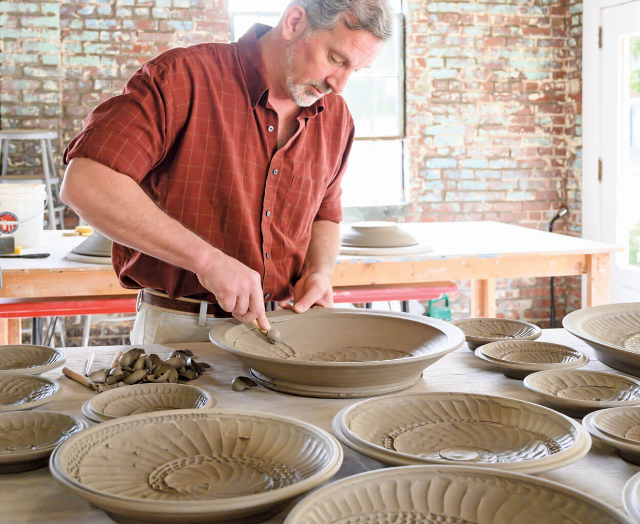 Morganton’s architecture gives character to its studios and gallery spaces, like potter Hamilton Williams’s 100-year-old storefront on Union Street. photograph by C2 Photography