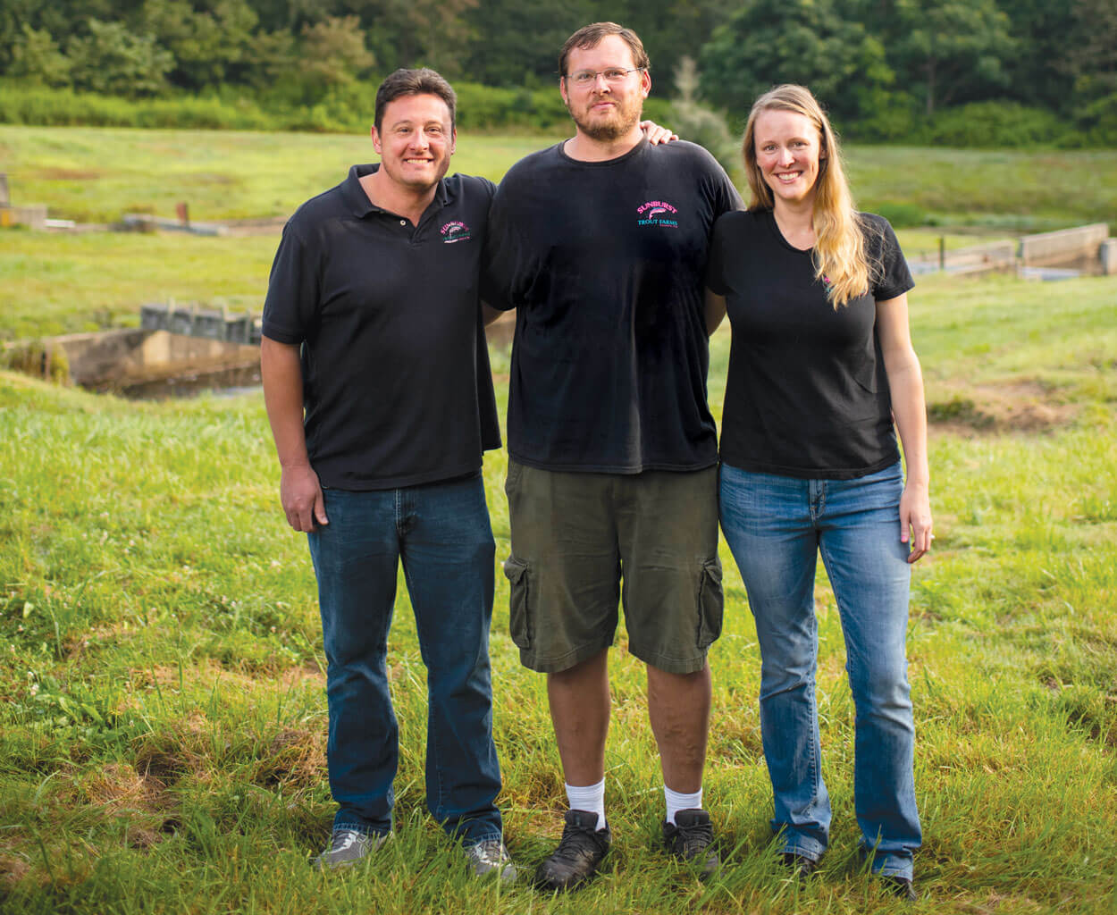 Siblings (left to right) Wes and Ben Eason and Katie Hughes manage all aspects of the Sunburst Trout operation. Started by their grandfather Dick Jennings and carried on by their mother, Sally Hudson, the business remains a family passion. photograph by Jack Sorokin