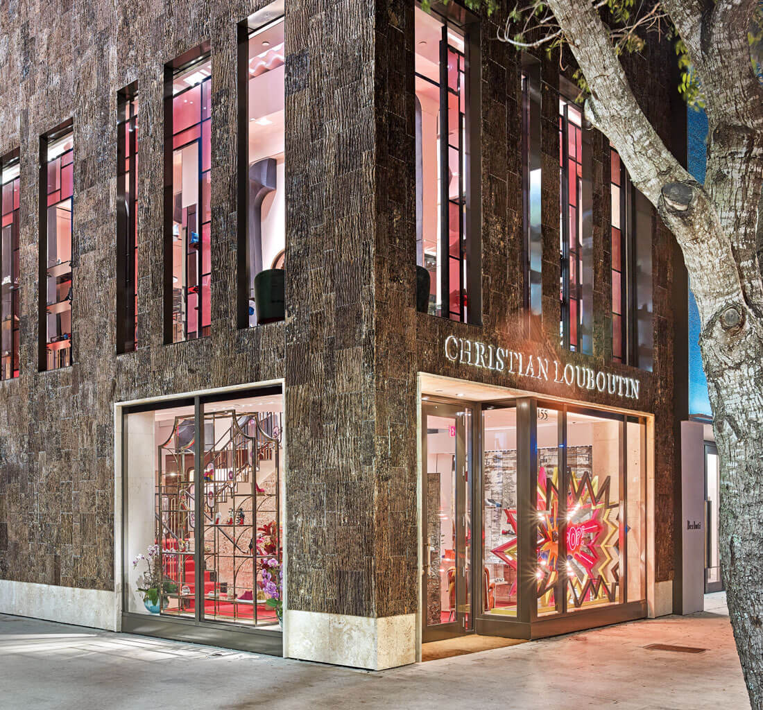 Mountains to sea: The Christian Louboutin store in Miami is clad in hundreds of tulip poplar shingles from the Linville area. photograph by 212box/Nick Rochowski Studio