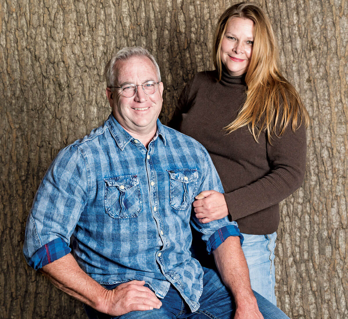 Marty and Chris McCurry have turned their love of bark architecture into a thriving business, Bark House, located in Spruce Pine. International clients, including Nike and Google, have used the McCurrys’ bark to add natural texture to their buildings. photograph by Emily Chaplin