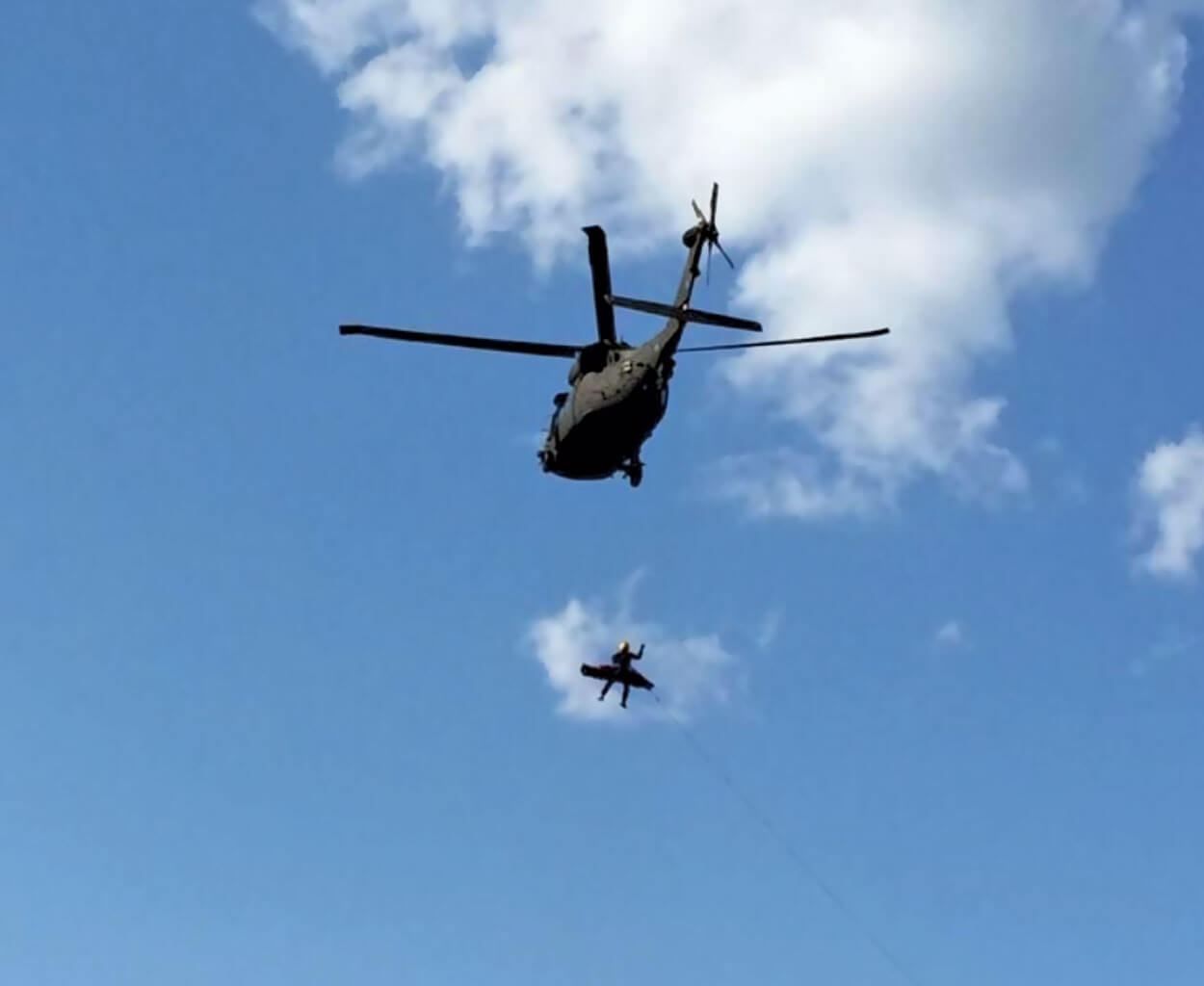 Rescuers weighed several options before calling in a Black Hawk helicopter to lift Jeremy out of the gorge. photograph by Sean Emery