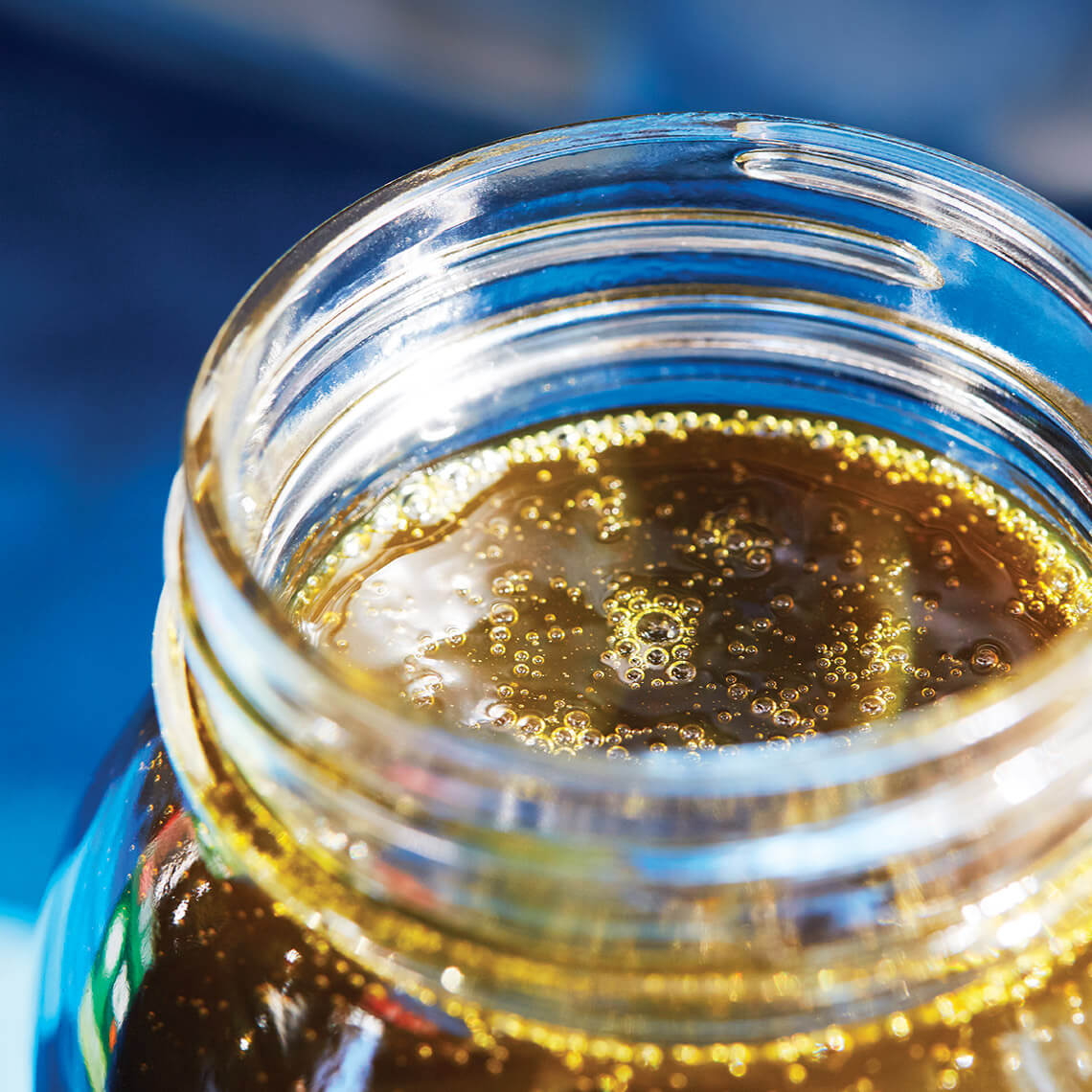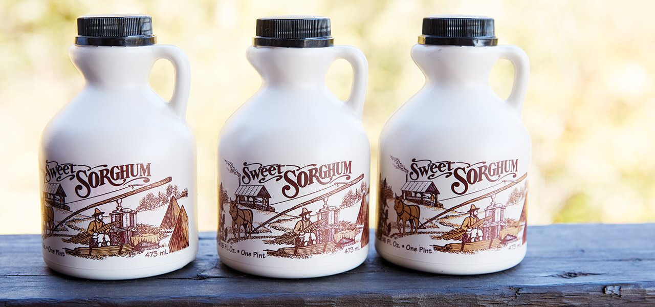 Futrell sells his sweet sorghum molasses syrup in various sizes, from three-ounce jugs to pints. photograph by Stacey Van Berkel