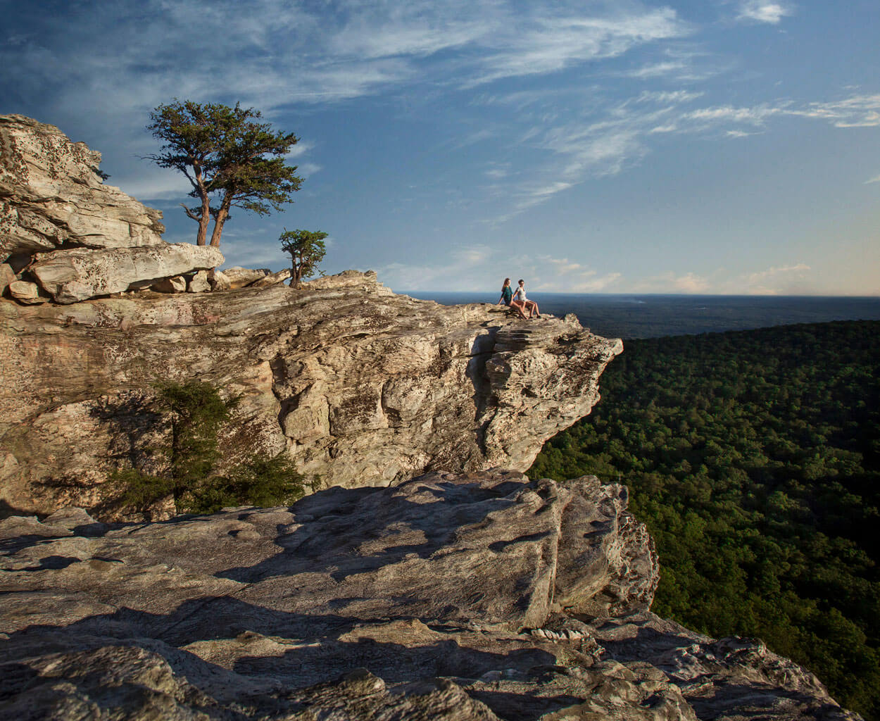 Discover the best of both worlds: a view of the surrounding Piedmont from the rocky outcroppings of the ancient Sauratown Mountains. To get to Hanging Rock from the west, the path follows the Sauratown Trail. Heading east, the trail follows mostly roads until Greensboro.