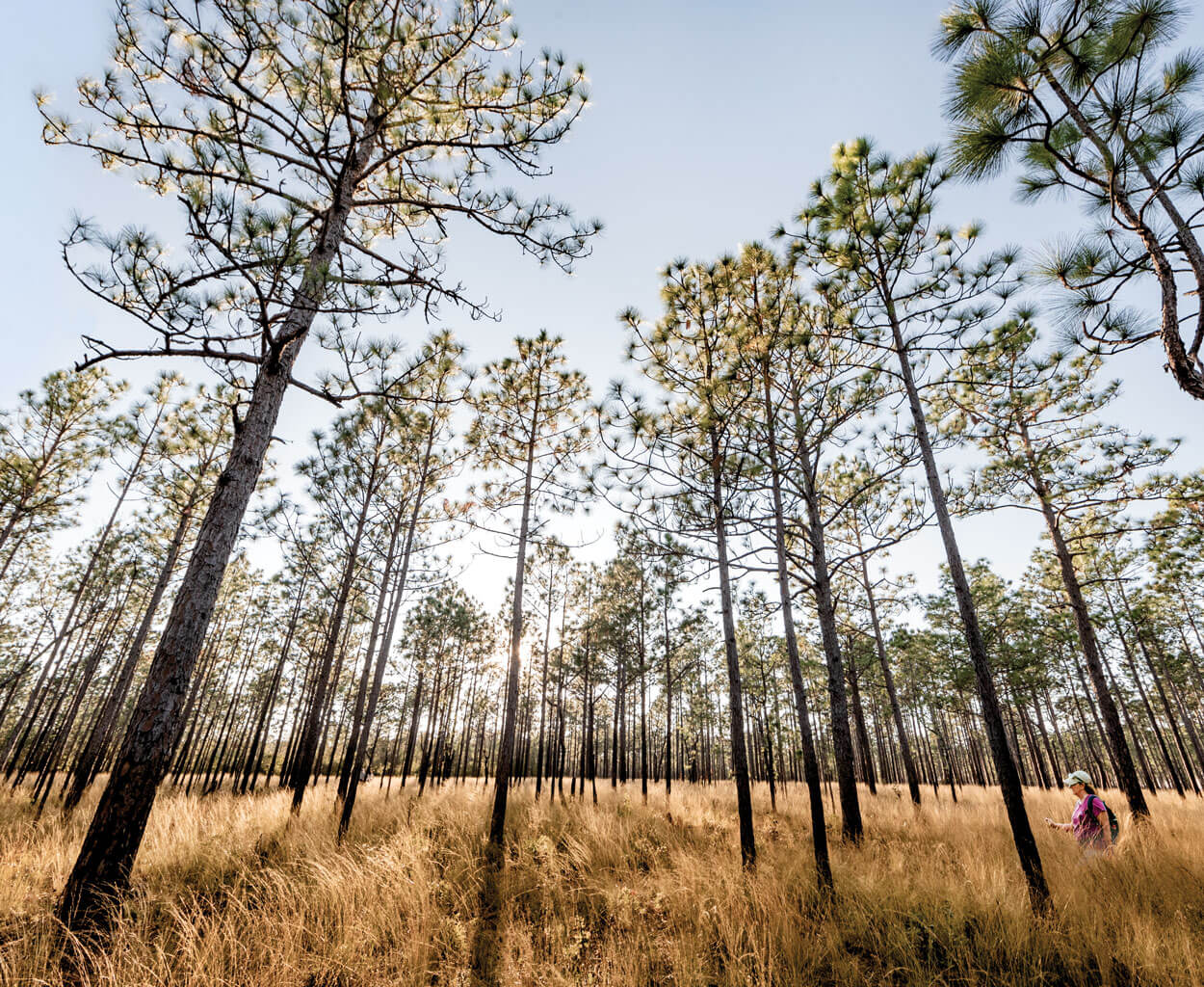 Here in Pender County, the MST follows 19 miles of forest road through stands of longleaf pine and pocosins. To the east, the trail meets the ocean for the first time, running for eight miles on the beach at Topsail Island before heading northward to Jacksonville.