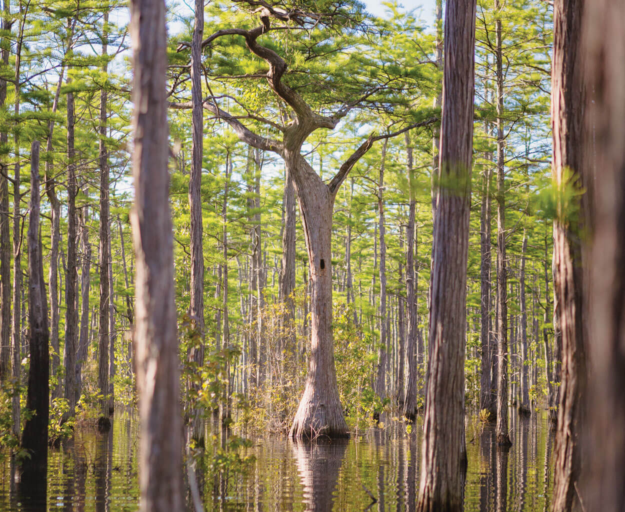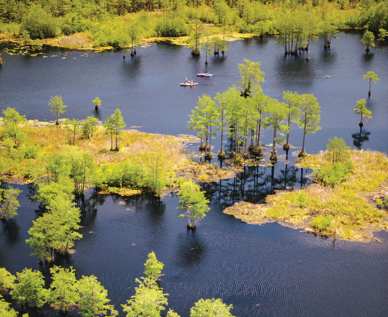 Carolina bays like Singletary Lake are named for the trees that love their peaty soil: red bay, loblolly bay, and sweet bay. photograph by Baxter Miller & Ryan Stancil