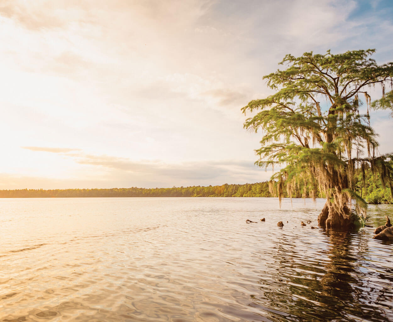 At nearly 9,000 acres, North Carolina’s largest bay lake is the crown jewel of the Columbus County town that shares its name. People have always been drawn to Lake Waccamaw’s peaceful waters and the longleaf pine forest along its shores. Long before modern-day arguments over the origin of the bays, Native Americans living near the lake explained its broad expanse with a story: A meteor appeared in the night sky, they said, then hurtled to earth, leaving a crater that filled with water from nearby creeks. To this day, Waccamaw Siouans call themselves “People of the Falling Star.”
