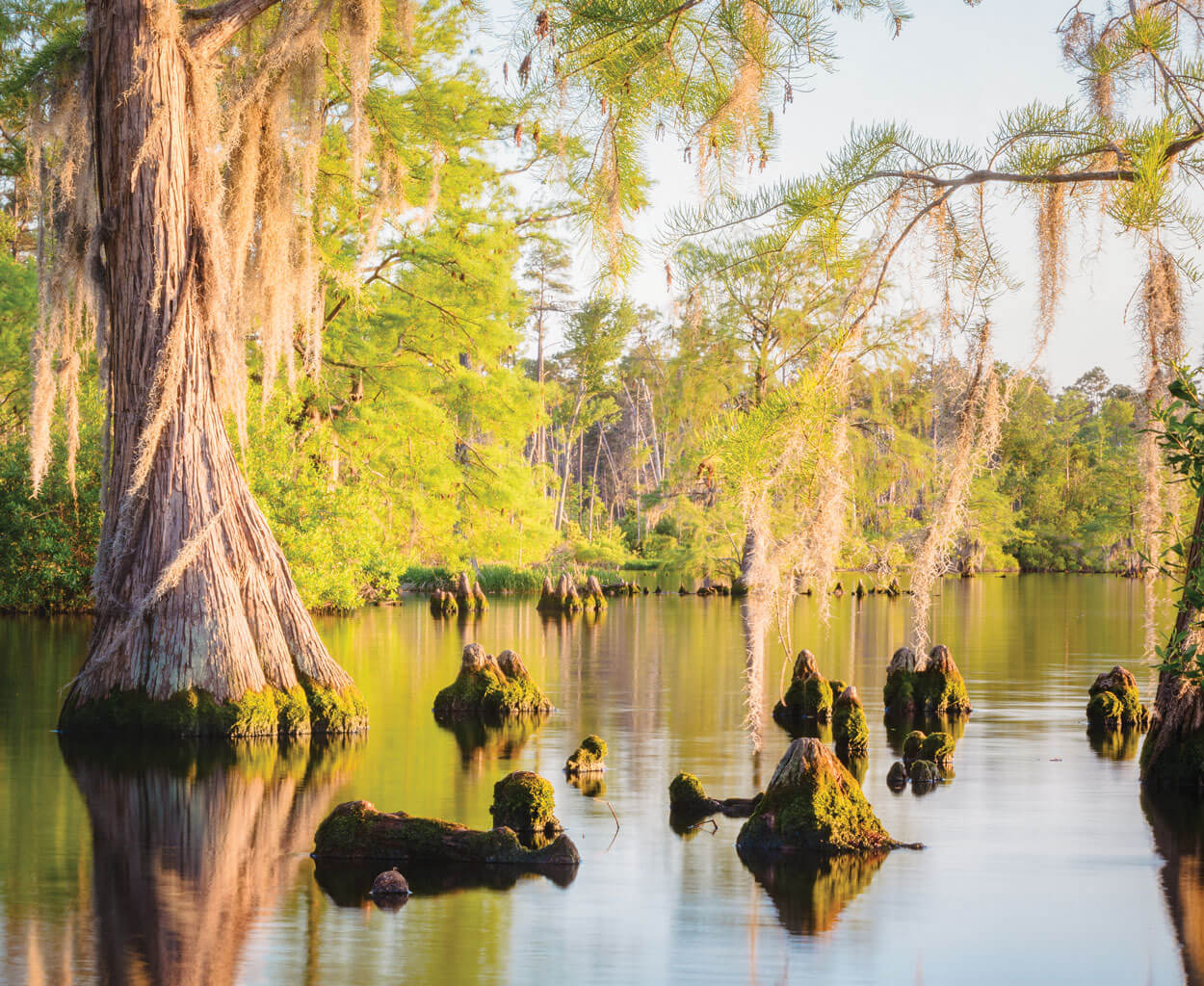 Cypress trees and Spanish moss create a magical environment at Singletary Lake. photograph by Baxter Miller & Ryan Stancil