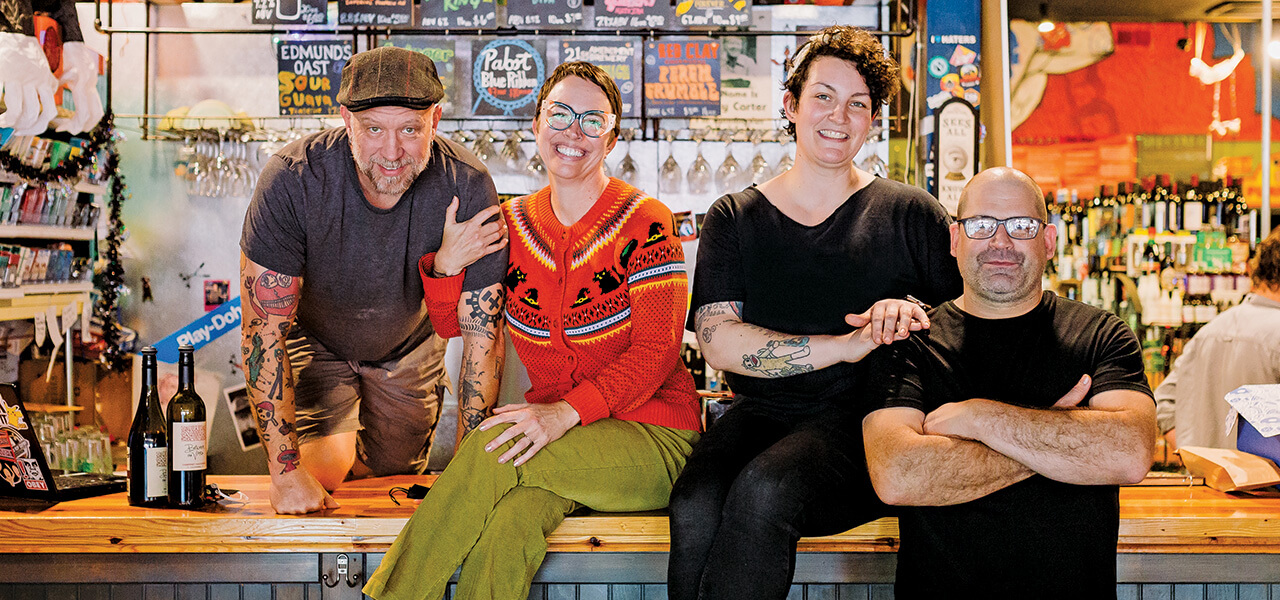 On Thursdays, Englander lets her creativity loose on customers who stop by for a wine, beer, or cider tasting, curating rotating tapas that range from grilled Halloumi cheese over minted tabbouleh to sesame-crusted seared tuna. Whenever possible, she sources produce from local growers, including several of East Frank’s customers. “We’ve met so many people, and we have so many connections,” Englander says, pointing to ingredients like mushrooms and honey that come from customers turned vendors.