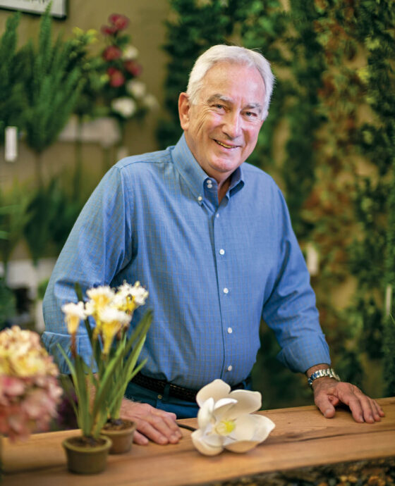 Glenn’s path from music and theater to artificial flower design was forged by his wife, Jef, who took the reins at her family’s second-generation fresh flower shop while he taught as a faculty member at ECU’s music school.