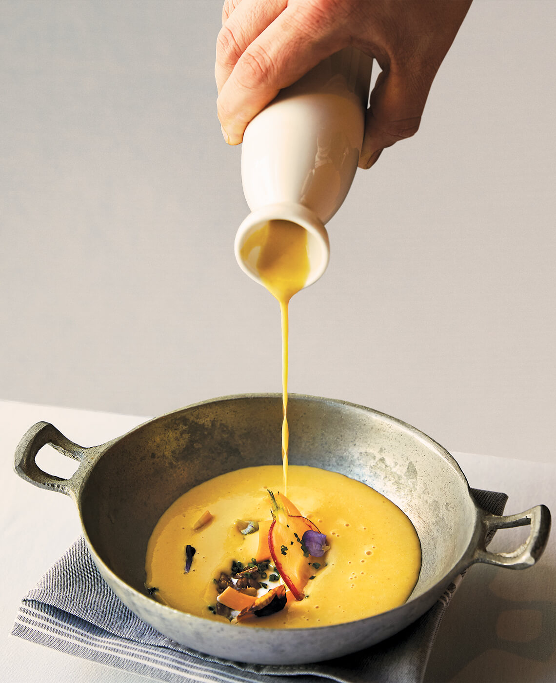 The secret behind The Prescott’s butternut squash soup with pecans and kale pesto? The chef gets the squash fresh from Harmony Ridge Farms in nearby Tobaccoville. photograph by Stacy Van Berkel