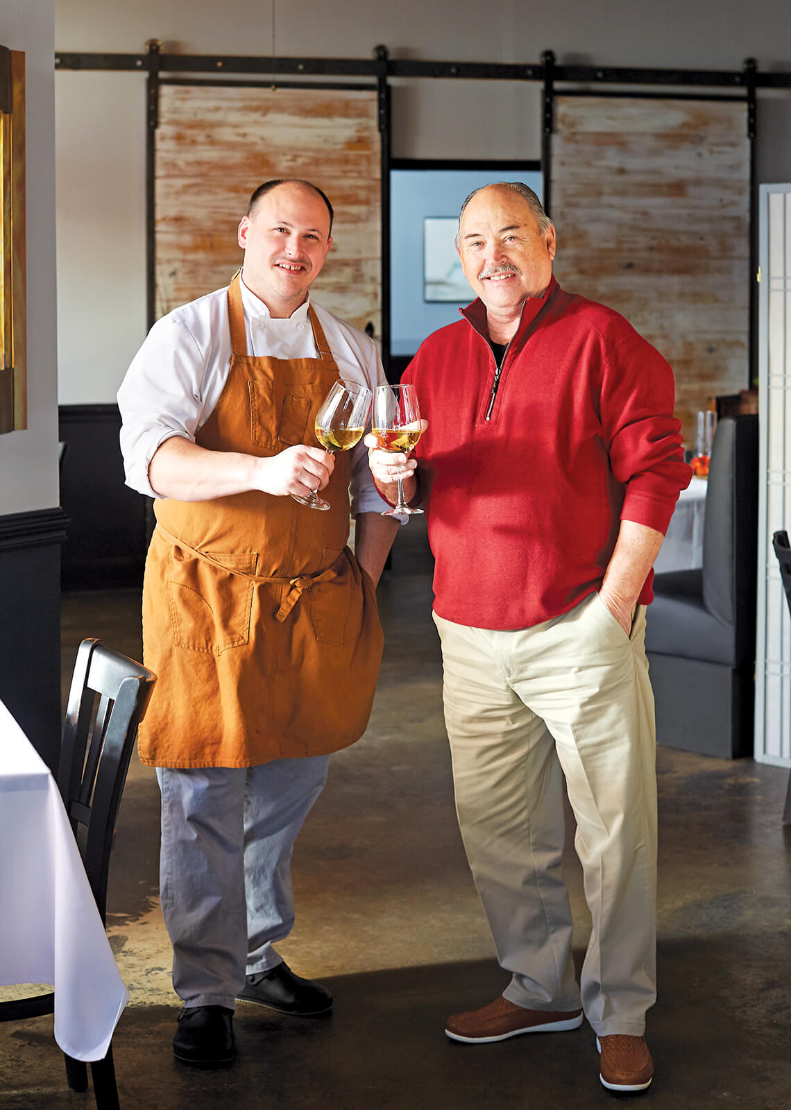 Trey Prescott and his dad, Bob, toast to a big idea in a small town. photograph by Stacy Van Berkel