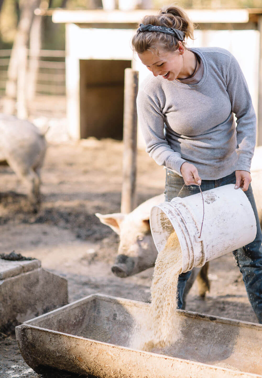 Lacey Queen raises her pigs using sustainable practices. She believes that happier, healthier animals make for a tastier final product at her market and restaurant. photograph by Revival Creatives