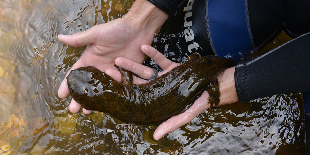 The New River is thought to be the second-oldest river in the world, and it has long been a haven for hellbenders. The species has persisted, mostly unchanged, since the age of dinosaurs. The recent decline in their population is due, in part, to sedimentation, which suffocates their eggs and blocks entry to their hideaways under rocks. There’s also concern about pollutants, human predators — including fishermen who mistakenly believe that hellbenders negatively affect trout populations — and the habitat disruption that occurs when people move river rocks.