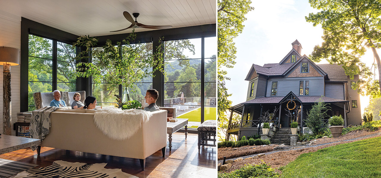Joel Kirby and Jay Burriss gaze out the windows of the spacious sunroom in the newly renovated Saluda Inn. From that vantage point, the inn’s owners can see the past, present, and future: In the distance stand breathtaking mountains, eternal sentinels that preceded the 143-year-old inn by eons. Beneath the windows, a sprawling Grand Lawn beckons guests to venture outside and enjoy the moment — say, a crisp fall evening. The manicured space also hosts wedding receptions and other outdoor celebrations, a nod to the future.