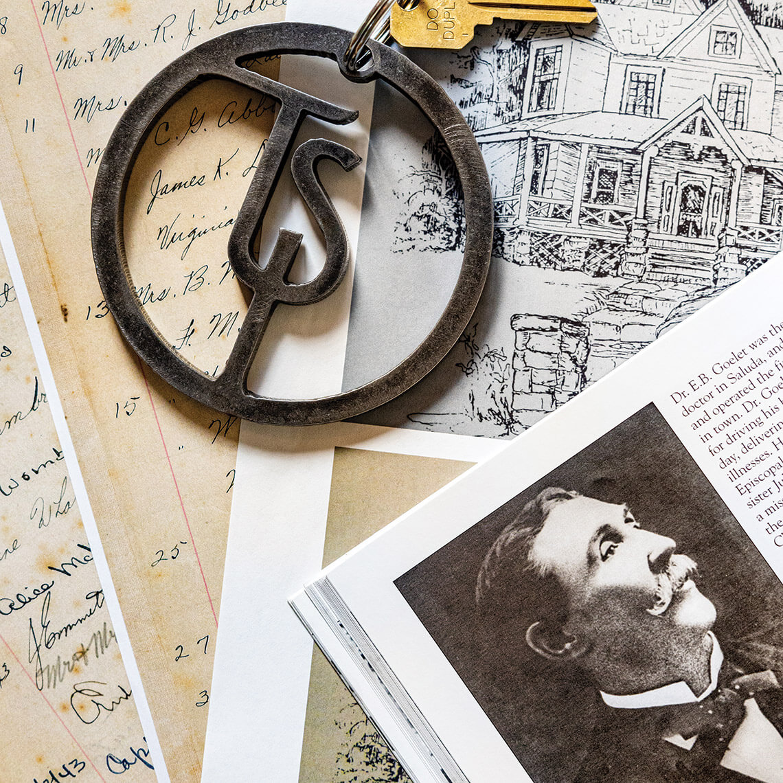 When Kirby and Burriss purchased the run-down building in 2020, they inherited a piece of local history: Saluda’s first doctor, E.B. Goelet, had the home built in 1880. While renovating the structure, Kirby and Burriss found an original guest book (background). photograph by Tim Robison