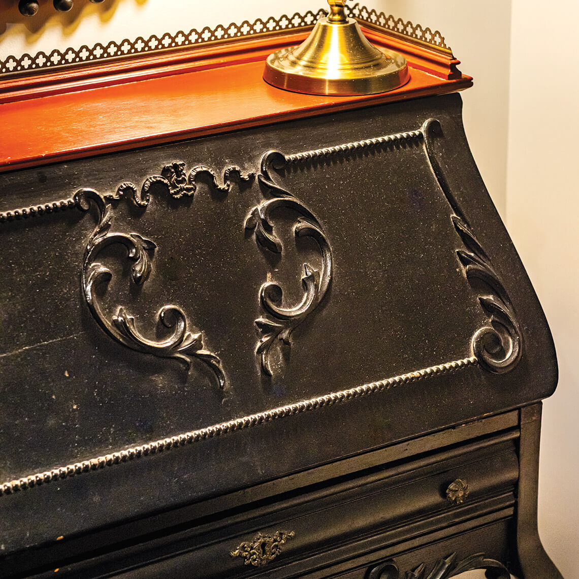 … like the ladies’ writing desk in the East Presidential Suite, still remain. <br><span class="photographer">photograph by Tim Robison</span>