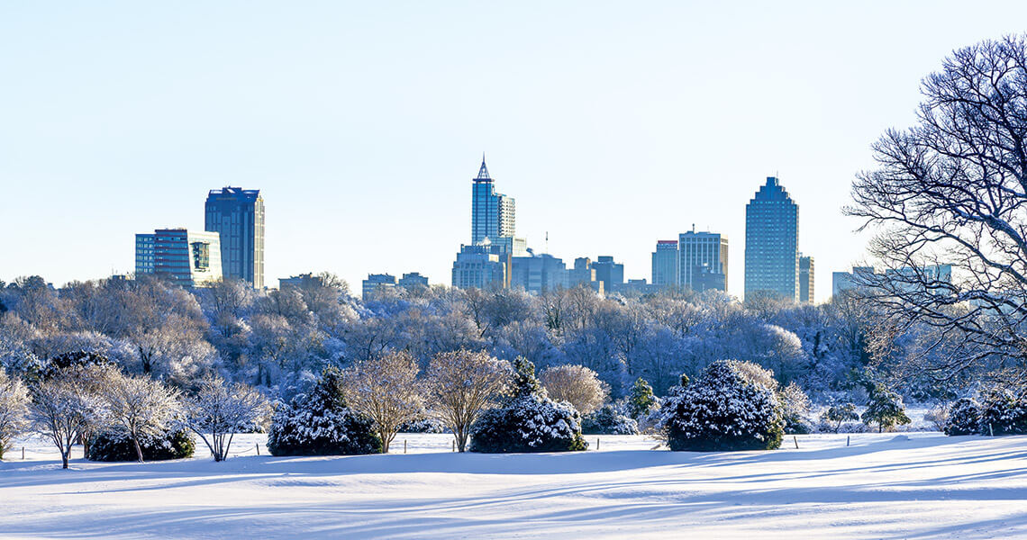 Little plastic saucers swoosh past me, cutting endless grooves on a snow-covered hillside in Raleigh. I’m standing in the thick of it all, dodging renegade sledders and listening to WRAL-TV meteorologist Elizabeth Gardner in my earpiece as she keeps the Triangle area updated on what’s to come. She’s reporting on the melting that’s sure to occur by noon and the warming trend that will settle in over the weekend. The anchors back in the studio soon pitch to me, the rosy-cheeked television reporter wearing a goofy knit cap, to deliver the all-important sledding conditions here at Dorothea Dix Park.