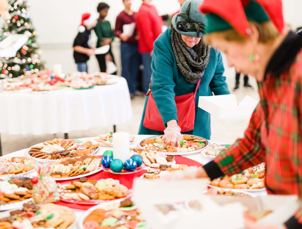 Just a few steps away, indoors at the Harrison Center, a dozen volunteers wearing Santa hats and Christmas-themed aprons, jewelry, and sweaters are making ready. A Christmas tree stands in one corner; a piano player tinkles Christmas tunes; laminated price sheets stand at the ready beside scales and calculators on a long row of tables. Sixteen round tables, completely filled with trays of cookies in every color, shape, and any other description, are covered with plastic wrap. If your memories of Sunday school or Scout meetings are fluorescent-lit parish halls where subpar, store-bought sandwich cookies and paper cups of tepid apple juice were the only choices, it’s time to up your game and create new memories. This is Christ Episcopal Church’s annual Christmas Cookie Walk.